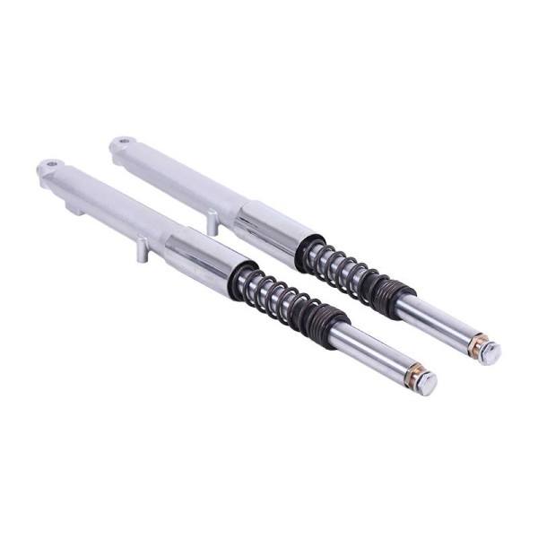 Amortizor fata TATA pentru moped Delta, diametru 25 mm, set: 2 buc - parte a suspensiei fata a mopedului, servind ca suport pentru montarea rotii fata. Amortizoarele sunt de tip ulei și sunt simple și fiabile. Designul elegant cromat se potrivește bine cu orice culoare a cadrului.