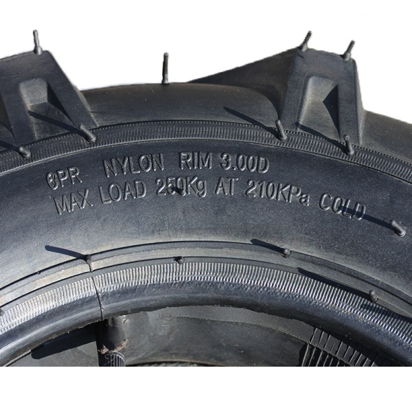 Anvelopele cu cameră de aer TATA 6PR (bloc motor) de 5.00*10 sunt livrate complet cu cameră de aer. Banda de rulare tip „herringbone” asigură o capacitate fiabilă de cross-country pe teren accidentat. Anvelopa este fabricată din cauciuc de înaltă rezistență, are șase straturi de cord. Sarcina admisă este de 250 kg, ceea ce asigură rezistență la sarcini și uzură.