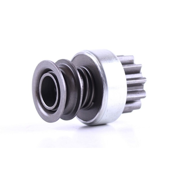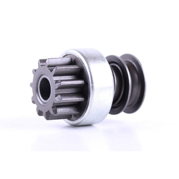 Ambreiajul Bendix TATA Z-11 pentru motor diesel de 190N este conceput pentru utilizare pe scară largă în tractoare cu acționare manuală, tractoare cu motor și generatoare cu o capacitate de 10 CP. Acest ambreiaj cu roată liberă este responsabil pentru transmiterea cuplului de la demarorul electric la volanta motorului în momentul pornirii, apoi se oprește automat, eliminând rotația inversă. Modelul Z-11 are 11 dinți pe coroană, ceea ce asigură o cuplare fiabilă cu roata dințată a demarorului. Acest lucru este important în special la pornirea motoarelor diesel cu un raport de compresie ridicat, unde este necesar să se transmită o forță semnificativă fără patinaj și smucituri. Datorită designului ranforsat și mecanismului de înaltă precizie, ambreiajul rezistă la porniri intense, impacturi și vibrații tipice motoarelor diesel. Carcasa Bendix este fabricată din oțel durabil cu tratament anticoroziv, iar ambreiajul intern este fabricat din metal călit cu un coeficient ridicat de rezistență la uzură. Elementele interne asigură o funcționare liberă la pornire și oprire instantanee după ce motorul începe să funcționeze independent.