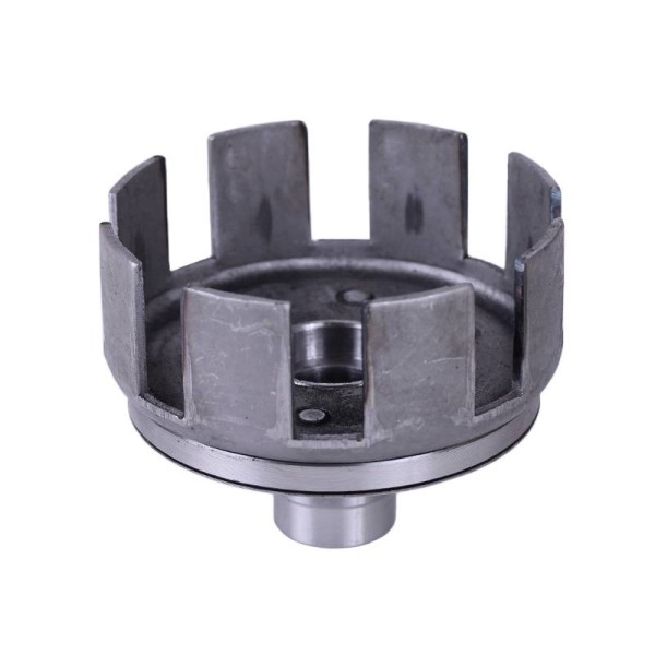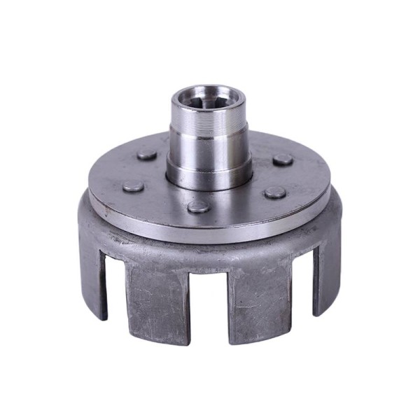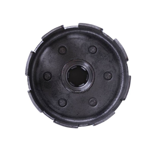 Coș de ambreiaj gol TATA la cutia de viteze, pentru caneluri de 25 mm este un element constitutiv al ambreiajului cu disc. Acționează ca o legătură între motorul cu ardere internă și transmisie. Scopul principal este conectarea fără probleme a consumatorilor de energie ai unității de alimentare în momentul unei schimbări bruște a sarcinii. Este destinat instalării pe un reducător de viteze al tractoarelor cu mers pe jos diesel și benzină cu o putere de 6-9 CP. aer răcit. Coșul este canelat pe arborele cotit pentru o potrivire sigură și o instalare ușoară.