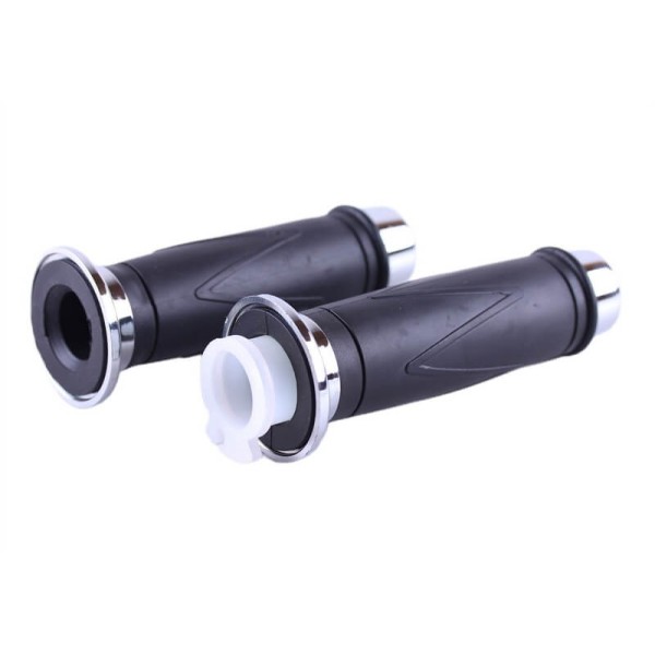 Mânerele cromate pentru volan TATA, set de 2 piese, sunt elegante și ergonomice pentru motociclete, scutere și alte autovehicule, realizate cu un strat cromat. Acest set de mânere nu numai că oferă o prindere confortabilă și sigură pe volan, dar conferă și vehiculului un aspect plăcut din punct de vedere estetic datorită finisajului cromat. Mânerele cromate pentru volan TATA sunt utilizate pentru a îmbunătăți confortul și stilul de control al direcției la diferite tipuri de motociclete. Utilizarea acestor mânere reduce vibrațiile transmise mâinilor șoferului în timpul mersului, previne alunecarea palmelor, în special în condiții meteorologice nefavorabile, și oferă un control mai bun asupra vehiculului, sporind siguranța. În plus, finisajul cromat îmbunătățește aspectul volanului. Înlocuirea la timp a mânerelor uzate sau deteriorate este importantă, deoarece pierderea contactului fiabil cu volanul poate duce la pierderea controlului și la situații periculoase pe șosea, ceea ce poate provoca răniri și deteriorarea echipamentelor.