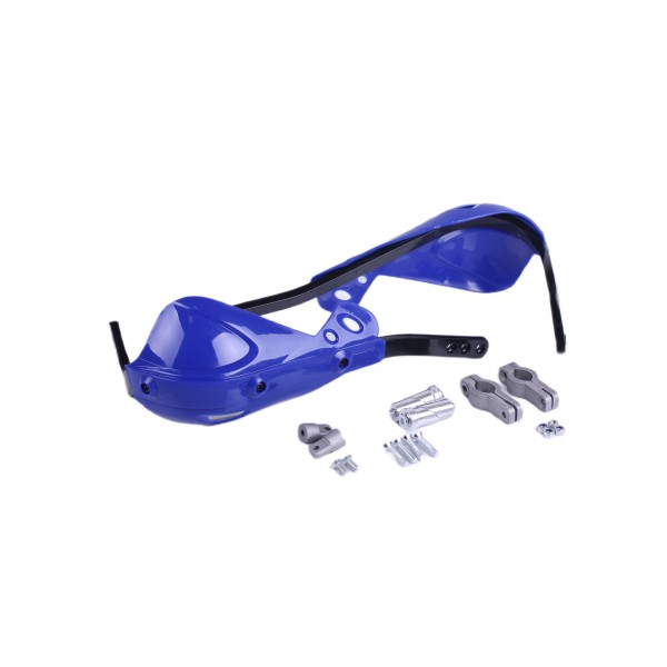 Protectie universala ranforsata pentru maini TATA, culoarea albastra este un set de doua scuturi din plastic albastru cu element de armare metalic, concepute pentru a proteja mainile soferului de vant, ploaie, pietre zburatoare si crengi. Această piesă de schimb este universală și poate fi instalată pe diverse modele de motociclete, ATV-uri, snowmobile și alte autovehicule cu suportul corespunzător pe ghidon. Beneficiile utilizării protecției mâinilor TATA includ oferirea de confort și siguranță în timpul conducerii în diferite condiții meteorologice și pe teren accidentat, precum și prevenirea rănilor mâinilor cauzate de influențele externe. Înlocuirea în timp util a protecției mâinilor deteriorate este importantă, deoarece fisurile sau ruperea îi reduc proprietățile de protecție și pot duce la disconfort sau rănirea mâinilor șoferului. Folosirea unei protecții adecvate pentru mâini mărește siguranța și confortul utilizării echipamentului motocicletei.
