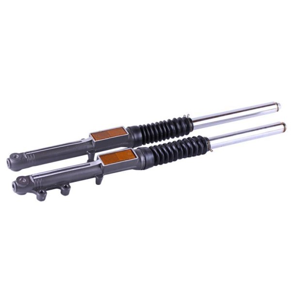 Амортизаторы передние (дисковый тормоз) New ТАТА на двигатель СВ-125/150, к-т: 2 шт. являются неотъемлемой частью передней подвески мотоцикла или мопеда. Предназначена для крепления колеса к раме мототехники и обеспечивает демпфирование вибраций при движении по неровной поверхности. Особенностью конструкции является наличие на корпусе крепления для суппорта дискового тормоза. Пружины амортизатора защищены от грязи и неблагоприятных погодных условий резиновыми пыльниками, что защищает их от коррозии и снижает износ сальников и штоков, продлевая тем самым срок эксплуатации. Амортизаторы – важнейшая часть системы безопасности и комфорта мотоцикла или мопеда от его исправности напрямую зависит тормозной путь и управляемость транспортного средства.