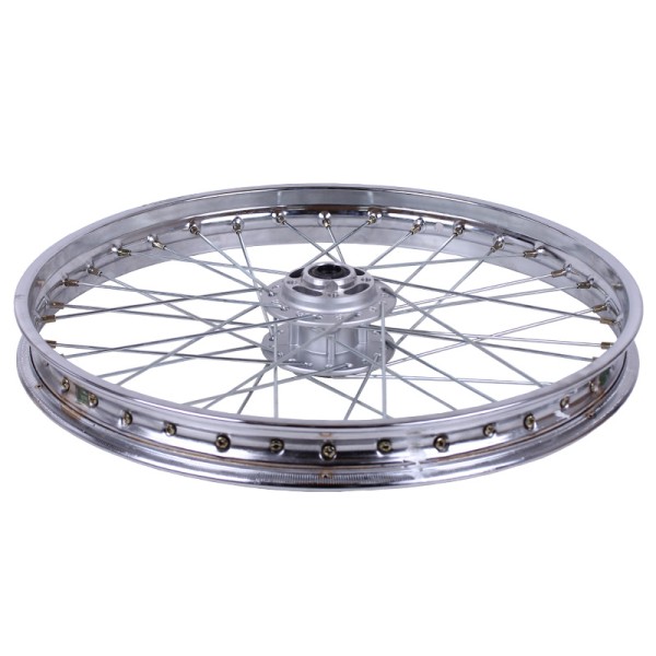 Диск передний ТАТА R21*1.60J для мотоцикла XY200GY-9А — это прочный и надёжный колесный обод с хромированным покрытием, рассчитанный на интенсивную эксплуатацию как на асфальте, так и на пересечённой местности. Конструкция выполнена с учётом высоких нагрузок, возникающих при езде по бездорожью, обеспечивая устойчивость и долговечность.