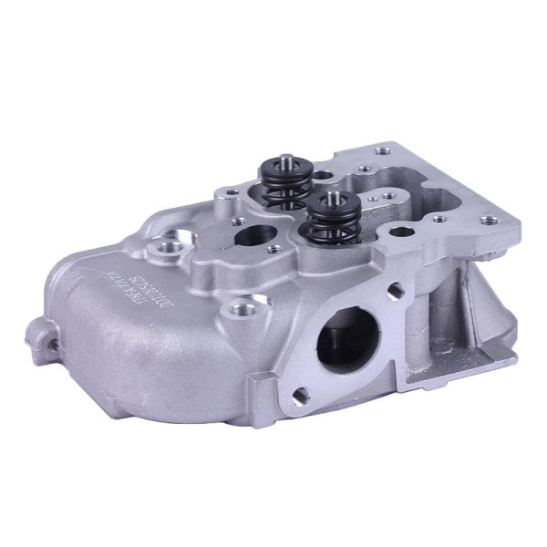 Головка блока цилиндра в сборе TT AGRO MOTO на дизельный двигатель 178F, под 3 болта изготовлена из алюминия и предназначена для установки на дизельные двигатели мощностью 6 л.с. и воздушным охлаждением. Крепление клапанной крышки осуществляется тремя болтами, это важно учитывать при приобретении головки на замену старой. Головка оснащена впускным и выпускным клапанами, установлены сухари, тарелки и седла клапанов. Все элементы подогнаны и притерты для обеспечения надежной работы двигателя. Благодаря высокой теплопроводности алюминия головка носит большой вклад в процесс охлаждения силового агрегата, что позволяет поддерживать мощность на высоком уровне.