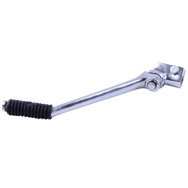 Кикстартер ТАТА на двигатель CG150/200 предназначен для запуска двигателя внутреннего сгорания за счет мускульной силы. Изготовлен из стали и имеет резиновую накладку на подножке для препятствия соскальзывания ноги в момент запуска. Устройство крепится на вал кикстартера с помощью зажимного кронштейна, для надежности соединения на внутренней поверхности крепления расположена насечка. Деталь покрыта защитным слоем для защиты от коррозии и предания эстетического вида. В случае разряда аккумулятора или неисправности в цепи электростартера кикстартер единственный безопасный способ завести двигатель.