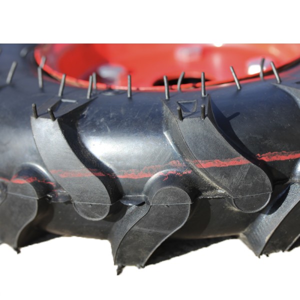 Колесо в сборе 3.5*6 (под 5 болтов) TATA просто монтируется, подходит для работ в любой сезон. Все элементы уже подобраны, не нужно тратить время на их покупку и сборку, можно сразу приступать к установке/замене колес. Благодаря широкому протектору с выраженным рисунком обеспечивается хорошее сцепление с поверхностью, облегчается управление культиватором.