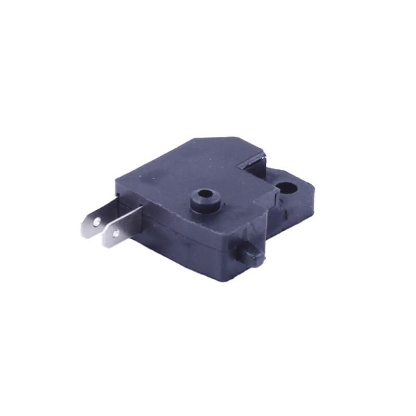 Устройство выполнено в квадратном корпусе из прочного пластика, внутри расположен пружинный плунжер с контактной группой. Контакты изготовлены из металла с защитным покрытием, устойчивым к коррозии, а выводы имеют стандартные клеммы для подключения к жгуту. Лягушка рассчитана на работу с напряжением 12 В и выдерживает ток до 5–10 А, что соответствует нагрузке стандартной лампы или светодиодного стоп-сигнала. Монтаж осуществляется слева на руле в зоне рычага дискового тормоза, крепление фиксирует переключатель в рабочем положении.