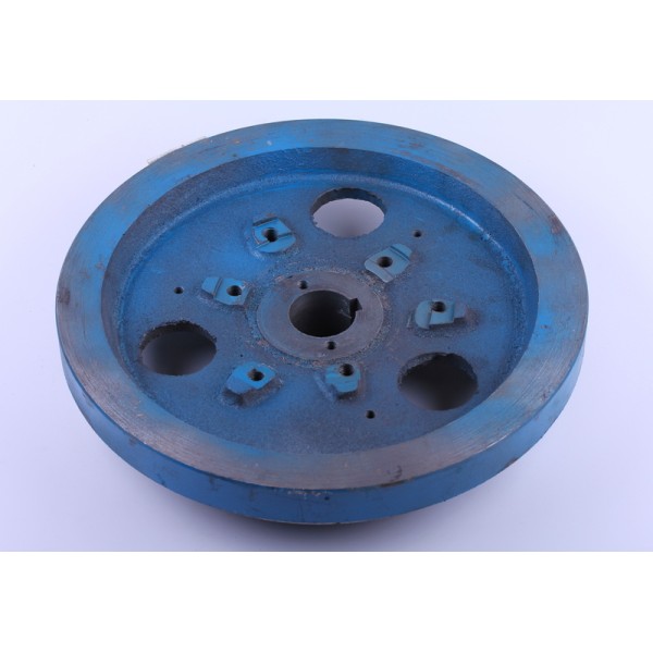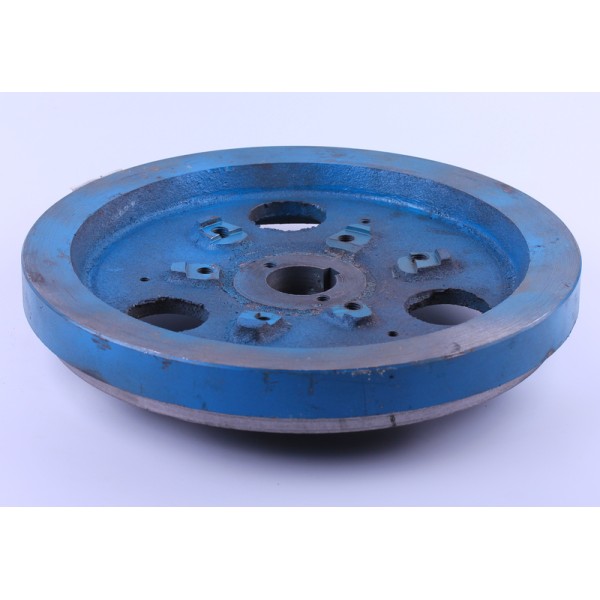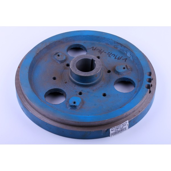 Маховик ТАТА 190N с проточкой под венец – это часть кривошипно-шатунного механизма, системы сцепления и системы запуска двигателя. Маховик ТАТА 190N задействован в качестве накопителя кинетической энергии или для создания инерционного момента. Наличие венца под бендикс позволяет установить электростартер. Отвечает за передачу крутящего момента от силового агрегата и стартера, вводит поршни из НМТ, ВМТ, демпферирует крутильные колебания и придает равномерность вращению коленчатого вала. Маховик 190N подходит на дизельные двигатели мотоблоков и мототракторов мощностью 10 л.с. с водяным охлаждением. Материал корпусам детали – чугун.