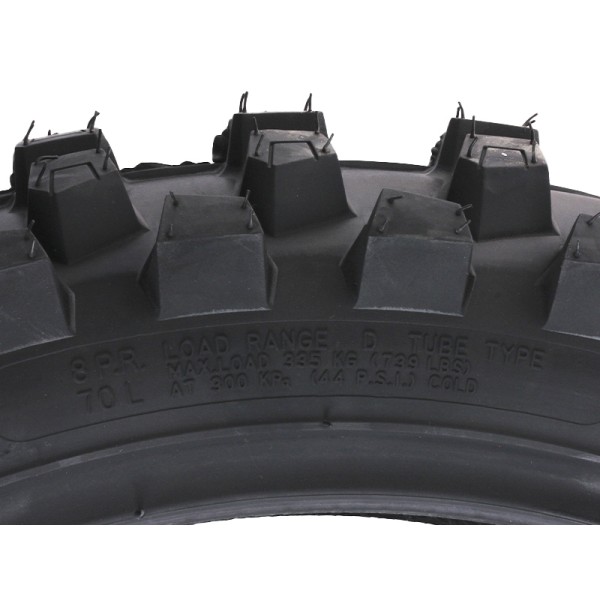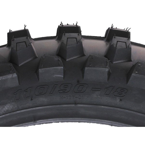 Покрышка ТАТА 110*90*18 TT 8PR - это усиленная бескамерная шина с высоким профилем, предназначенная для широкого спектра внедорожной и универсальной мототехники, где требуется посадочный диаметр 18 дюймов и размер 110/90. Ширина этой покрышки составляет 110 мм, а высота профиля - 90% от ширины. Маркировка 8PR означает усиленную норму слойности, что гарантирует повышенную прочность каркаса. Главное преимущество покрышки ТАТА заключается в ее восьмислойном (8PR) каркасе, который обеспечивает исключительную долговечность, устойчивость к проколам и надежность при высоких нагрузках и движении по пересеченной местности. Бескамерная конструкция (TT) повышает безопасность во время эксплуатации, так как при повреждении обеспечивается более медленная потеря давления. Универсальный рисунок протектора гарантирует отличное сцепление на асфальте, гравии и грунтовых дорогах, улучшая управляемость и тормозные характеристики. Своевременная замена старой, изношенной или поврежденной шины критически важна, поскольку стертый протектор резко снижает сцепление, увеличивает тормозной путь и повышает риск заноса на мокрой дороге, создавая аварийную ситуацию.
