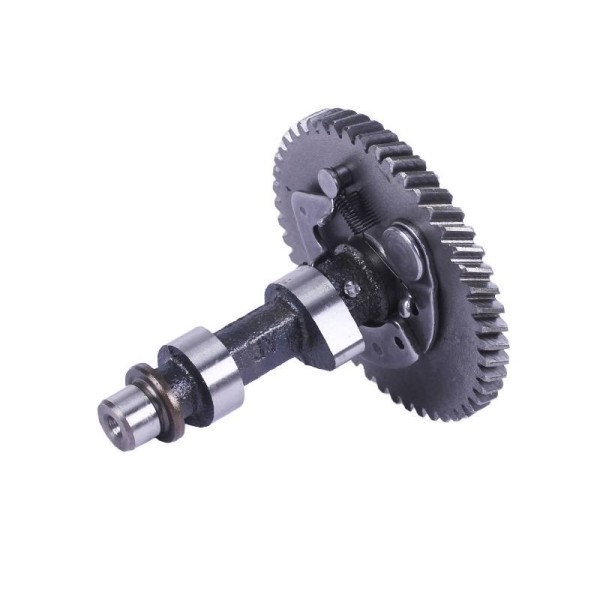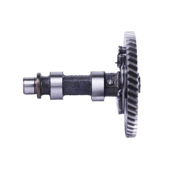 Распредвал ТАТА на бензиновый двигатель 168F/170F генератора GN 2-3,5 KW, Z-48 важный элемент системы газораспределения ДВС. На единой оси расположены: приводная шестерня с механизмом декомпрессора и два эксцентриковых кулачка для управления впускным и выпускным клапанами. Энергию для вращения деталь получает от приводной шестерни расположенной на коленчатом валу. Для строгого, совместного расположения коленвала и распредвала шестерни имеют метки, которые следует совместить в момент сборки двигателя. В процессе работы износу подвергаются поверхности металлических кулачков, что приводит к несвоевременному или не полному открыванию клапанов и нарушению фаз работы двигателя.