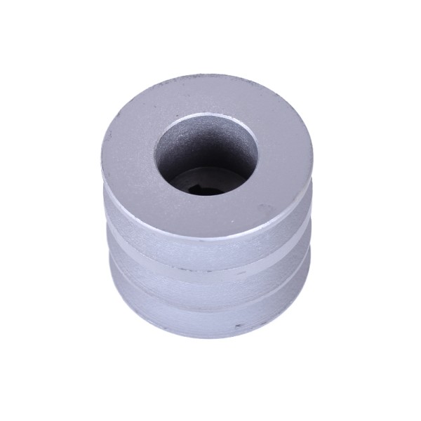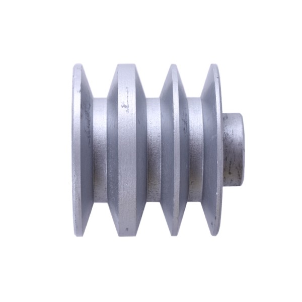 Выполненная из чугуна деталь имеет форму цилиндра с тремя коническими проточками для установки в них клиновидного ремня. Устанавливается на коленвал мотора с посадочным диаметром 20мм. Имеет шпоночное соединение для передачи вращательного движения.