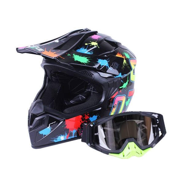 Шлем мотоциклетный кроссовый MD-911 VIRTUE (черный с цветной графикой, size S) с очками