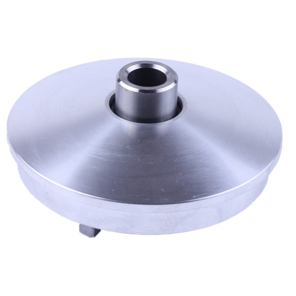 Вариатор передний в сборе YBX на бензиновый двигатель 125/150CC это готовый к установке узел автоматической трансмиссии, который преобразует обороты двигателя в тяговую силу на заднее колесо без механических переключений передач. В состав сборки входят ведущий вариаторный блок с подвижными и неподвижными шкивами, ролики (или грузики-weights), направляющая для ремня, внутренняя втулка и корпус, выполненные с учётом штатной посадки на кривошипный вал конкретных китайских моделей. Конструкция спроектирована так, чтобы обеспечивать плавное изменение передаточного числа по мере увеличения оборотов двигателя и нагрузки на привод.