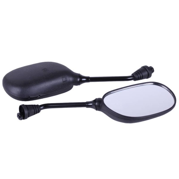 Зеркала ZX ТАТА для скутера Honda, овальные, М8, к-т: 2 шт. предназначены для установки на мопеды и скутеры. Комплект состоит из двух зеркал: левого и правого. Большая площадь поверхности обеспечивает хороший обзор и исключает мертвые зоны вблизи транспортного средства. Для крепления на кронштейне расположена резьба диаметром 8мм. Значительная толщина стоек уменьшает вибрацию и повышает комфорт использования зеркалами. Скругленные края и аэродинамическая форма корпуса заметно уменьшает сопротивление набегающему воздушному потоку и облегчает управление мототехникой. Стильный черный цвет гармонично сочетается с любой расцветкой транспортного средства и не нарушит экстерьер.