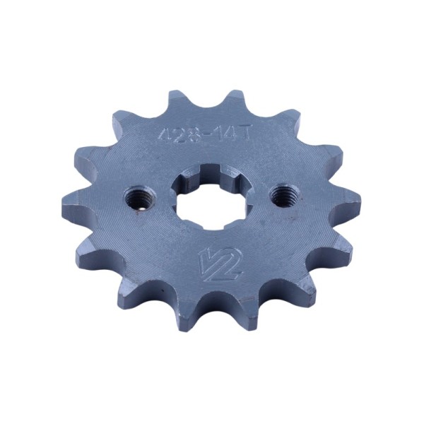 Звезда передняя 14Т YBX на мопед Viper Active с бензиновым двигателем 110CC — надежный элемент трансмиссии, обеспечивающий стабильную передачу момента и точную работу цепного привода, изготовлена из прочного металла и рассчитана на длительный ресурс даже при ежедневной эксплуатации. Применяется на мопедах с двигателем 110CC и воздушным охлаждением, устанавливается в узел трансмиссии и подходит для цепей стандарта 428, диаметр наружный 61 мм, межцентровое расстояние отверстий 30 мм, вес детали около 103 г, количество зубьев 14, что обеспечивает оптимальный баланс между динамикой разгона и тягой на низких оборотах. Используется для обслуживания и восстановления привода мопеда Viper Active, помогает вернуть точность работы передачи, снизить износ цепи и обеспечить равномерную нагрузку на трансмиссию. Преимущества: стабильная работа в условиях интенсивной езды, корректная геометрия зубьев для плавного зацепления, стойкость к износу благодаря металлу высокой жесткости, совместимость с популярными моделями мопедов и полное соответствие посадочным размерам 14/17 мм, что упрощает замену без доработок. Деталь обладает точной балансировкой, произведена YBX в Китае, хорошо переносит нагрузочные циклы, сохраняет форму зубьев и способствует продлению срока службы цепи и ведущего узла.