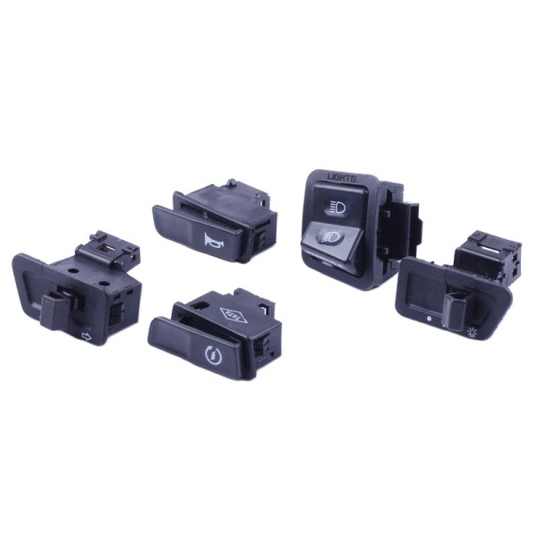 Butoanele pentru scuter TT AGRO MOTO 150CC (set de 5) sunt un set de comutatoare electrice specializate, concepute pentru a controla funcțiile de bază ale iluminatului și pornirii vehiculului. Acest kit este potrivit pentru modelele populare de scutere de 150cc care necesită o înlocuire completă sau o modernizare a comenzilor standard de pe ghidon. Avantajele cheie ale acestor butoane sunt plasticul ABS durabil, care își menține culoarea vibrantă și rezistă la crăpare sub lumina directă a soarelui. Plăcile de contact interne sunt fabricate din aliaj de cupru cu un strat tehnic, asigurând o conductivitate electrică perfectă și prevenind arderea în timpul comutărilor frecvente. Carcasa impermeabilă previne pătrunderea apei în contacte în timpul ploii sau spălării, asigurând o conexiune fiabilă a circuitului. Un răspuns tactil clar permite șoferului să activeze cu precizie semnalizatoarele sau claxonul fără a-și lua ochii de la drum. Înlocuirea la timp a butoanelor defecte este esențială pentru menținerea funcționalității complete a sistemelor de siguranță, deoarece conexiunile lipite sau slăbite pot provoca funcționarea defectuoasă a luminilor de frână și a farurilor. Instalarea unui kit nou de la TT AGRO MOTO elimină complet riscul de defecțiune a componentelor electrice în timpul mersului și restabilește comenzile scuterului la designul lor original.