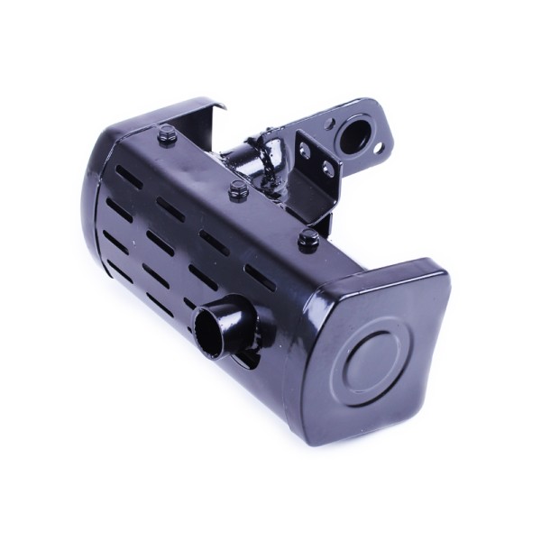 Toba de eșapament pentru motorul diesel 170D pe blocul motor. Această tobă de eșapament are o distanță centrală a orificiilor de montare de 26 mm, făcând-o compatibilă cu majoritatea tractoarelor cu mers pe jos.